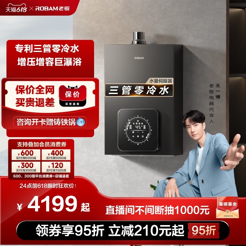 券 200元销量44[新品零冷水]老板官方燃气热水器16L天然气家用电智能恒温增压622
