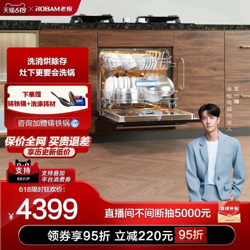 券 130元销量50[灶下]老板洗碗机小型洗锅全自动嵌入式升级热风烘干10套WB781XH