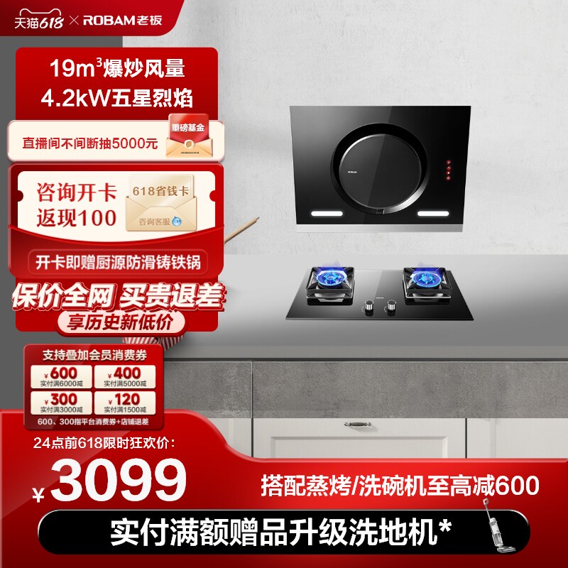 券 180元销量24Robam/老板官方26A7+30B0 烟灶套装侧吸式吸抽油烟机燃气灶套餐