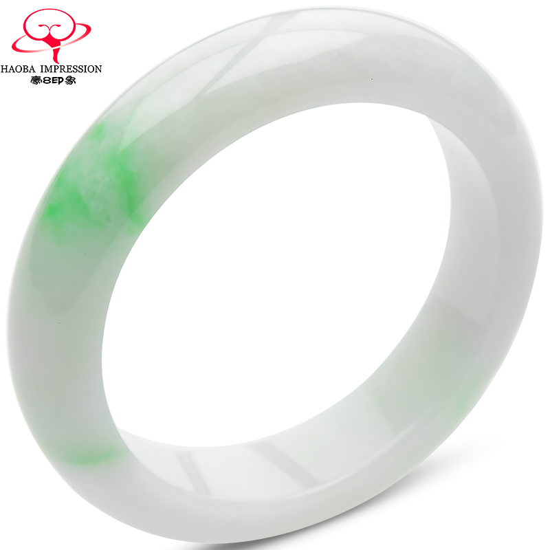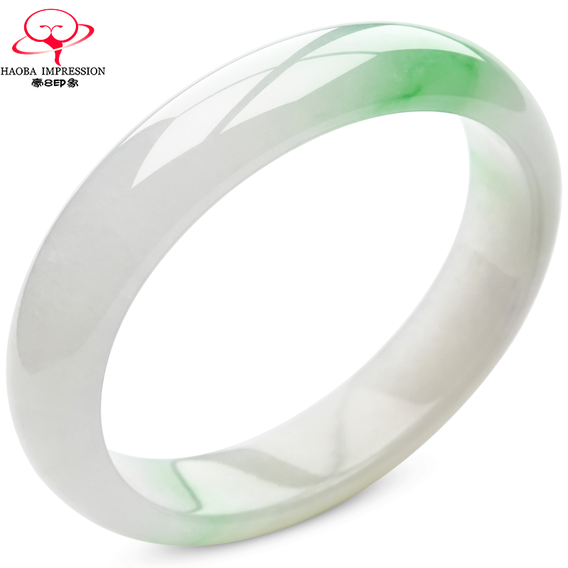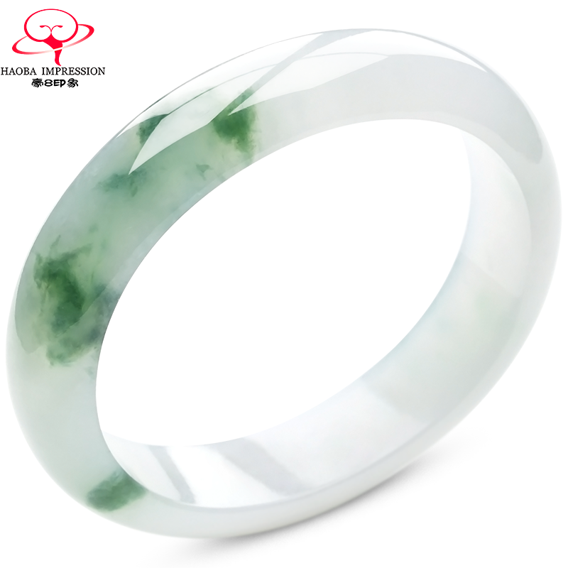 券 1200元销量0豪8印象S8-1917翡翠手镯/玉镯冰种白底带绿57.1mm缅甸玉石a货珠宝