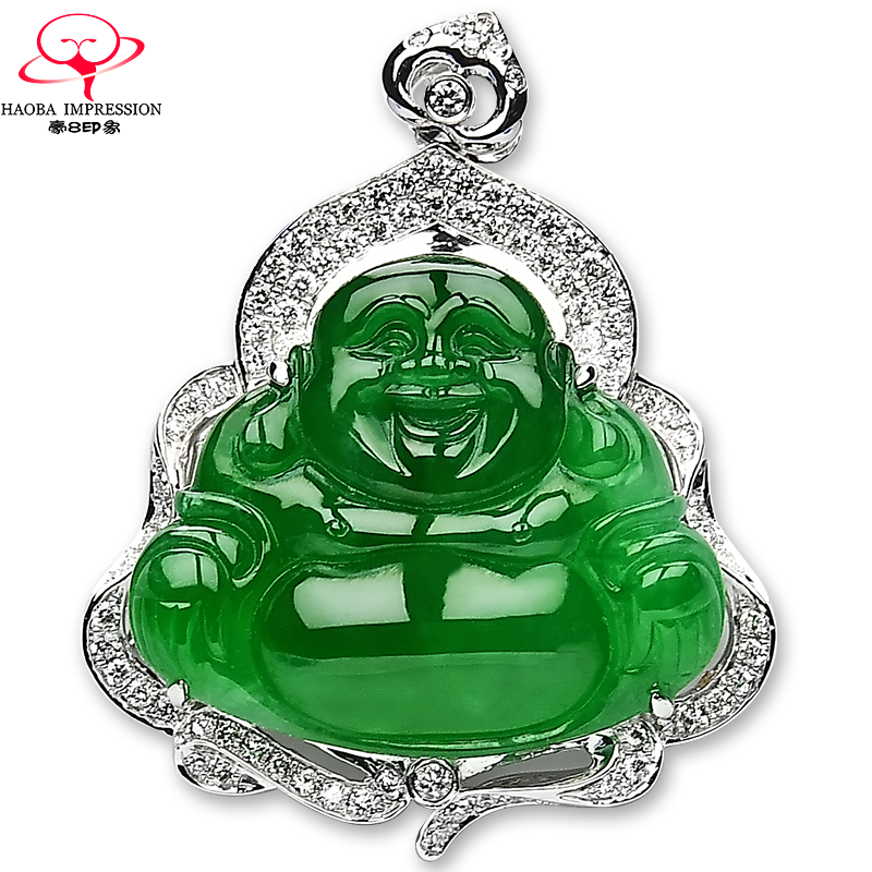 券 1200元销量0豪8印象F796天然翡翠镶嵌笑佛吊坠/挂件冰种浓绿缅甸a货玉石珠宝