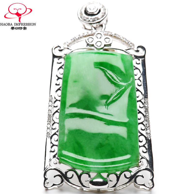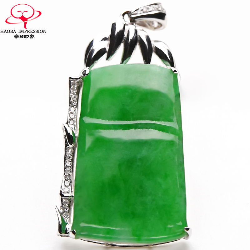 券 1200元销量0豪8印象L969翡翠镶嵌金钻竹节吊坠女冰种阳绿缅甸玉石a货挂件珠宝