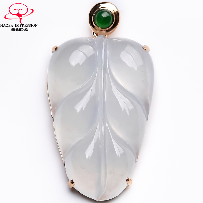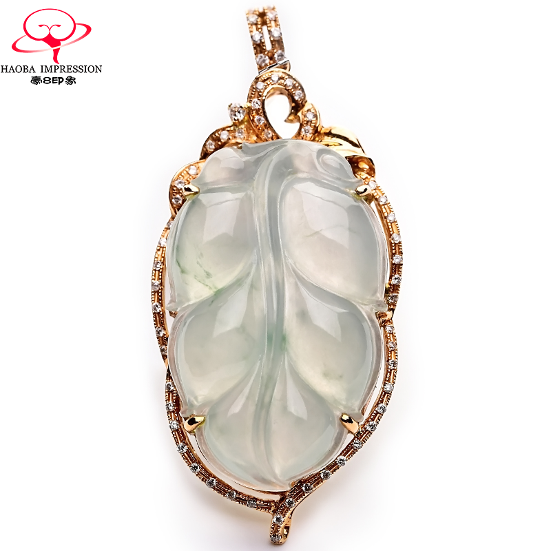 券 1200元销量0豪8印象L909翡翠18k金镶嵌带钻玉叶吊坠女玻璃种挂件玉石a货珠宝
