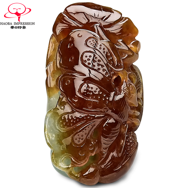 券 1200元销量0豪8印象HC112翡翠蝴蝶吊坠/玉坠挂件女款黄翡淡绿缅甸玉石a货珠宝