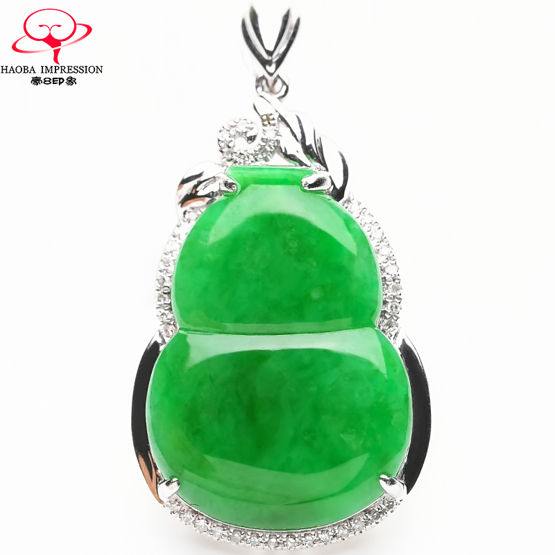券 1200元销量0豪8印象L1014翡翠镶金钻葫芦玉吊坠冰种阳绿缅甸玉石a货挂件珠宝