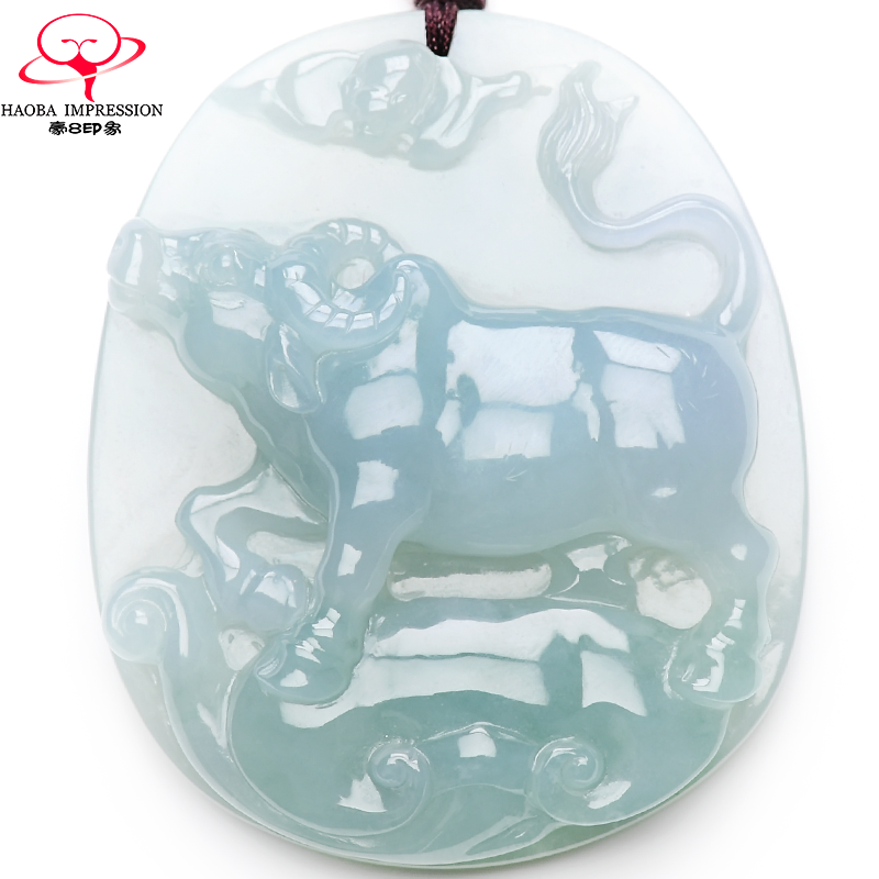 券 1200元销量0豪8印象L842天然翡翠生肖牛吊坠/玉坠冰种蓝绿缅甸a货玉石珠宝男
