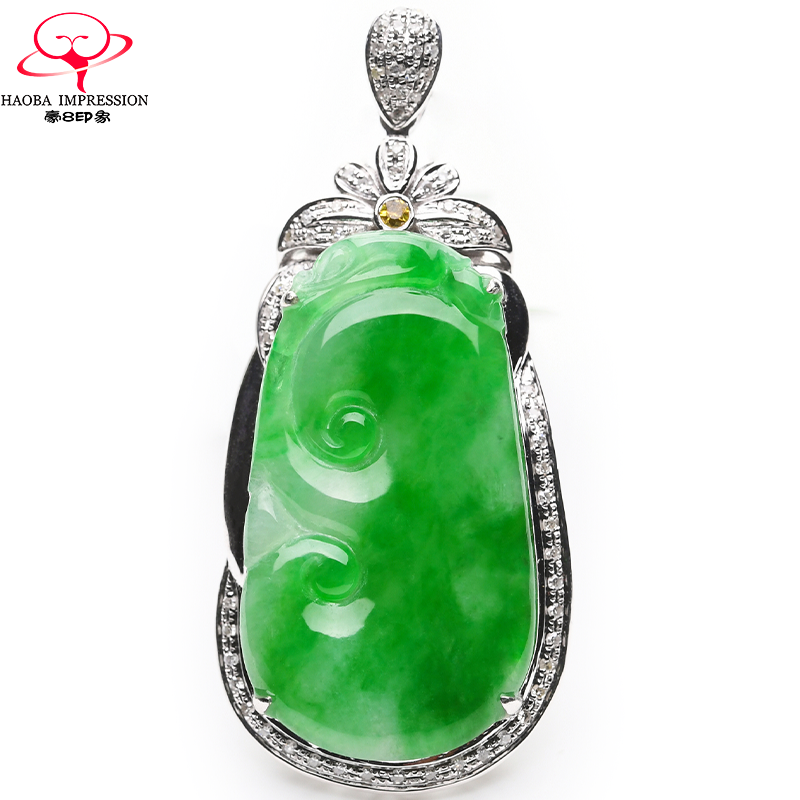 券 1200元销量0豪8印象L972翡翠镶金钻荷叶玉吊坠女冰种阳绿缅甸a货玉石珠宝挂件