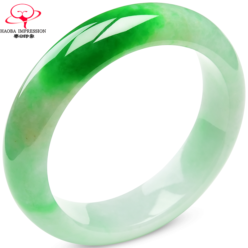 券 1200元销量0豪8印象M2429天然翡翠手镯/玉镯子女飘绿花59.9mm缅甸a货玉石珠宝
