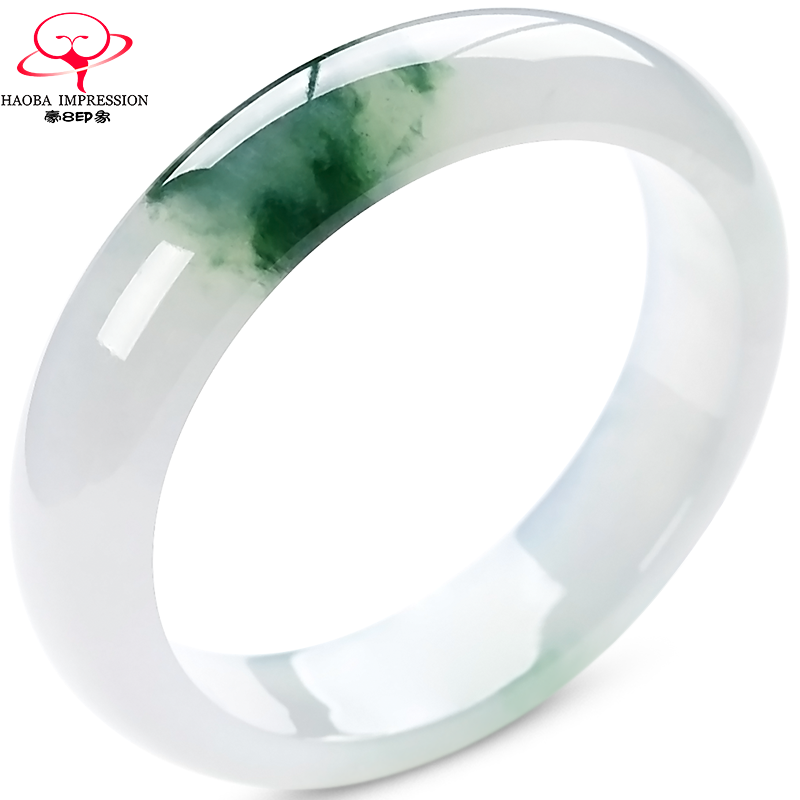 豪8印象S11-481翡翠手镯/玉镯子白底带翠57.5mm缅甸玉天然a货珠宝