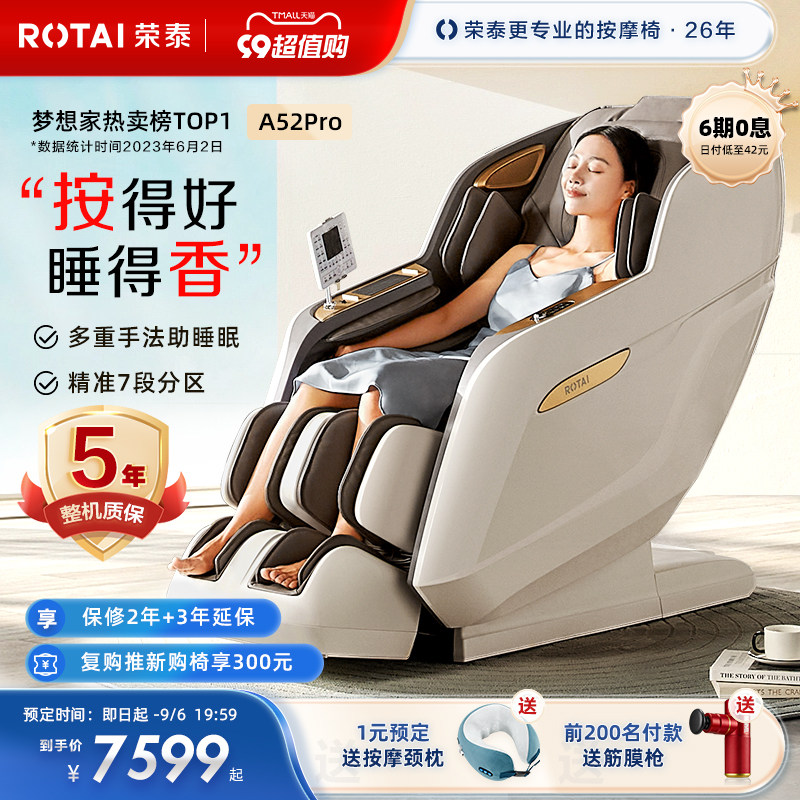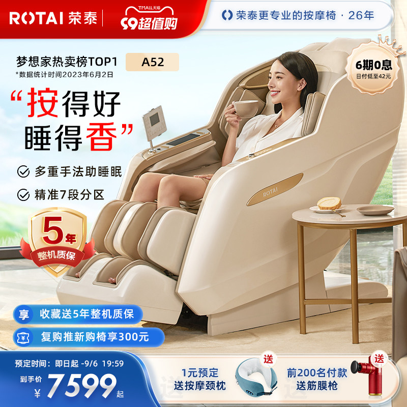 券 3500元销量100荣泰A52/A52Pro按摩椅家用全身豪华太空舱全自动多功能按摩沙发