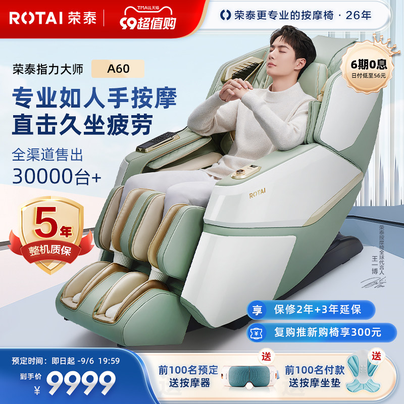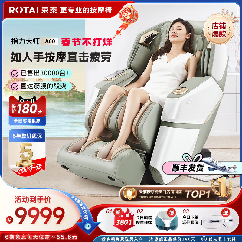 券 3200元销量20荣泰按摩椅家用全身豪华太空舱全自动多功能电动智能按摩沙发A60