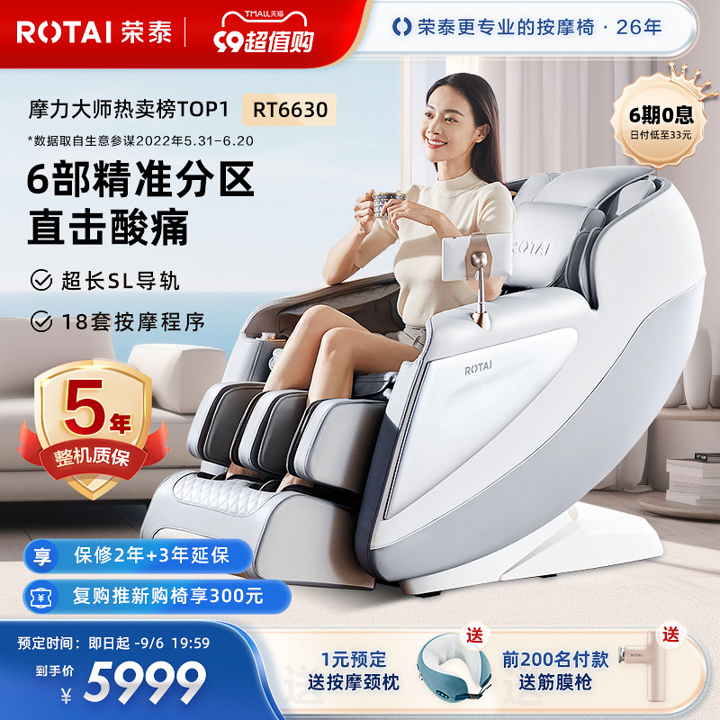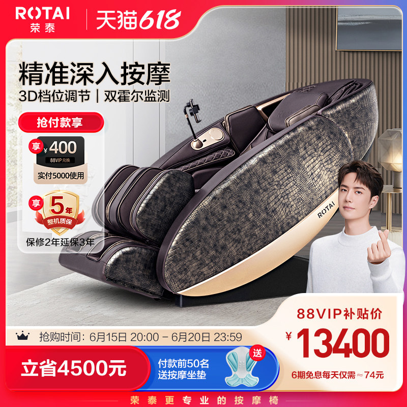 券 4820元销量10荣泰RT6630按摩椅家用全身多功能豪华太空舱智能电动按摩沙发新款