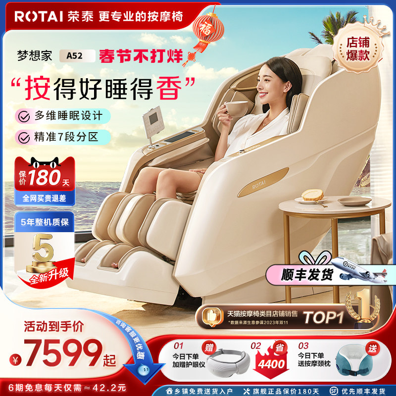券 4000元销量100荣泰A52/pro按摩椅家用全身太空舱全自动多功能电动智能按摩沙发