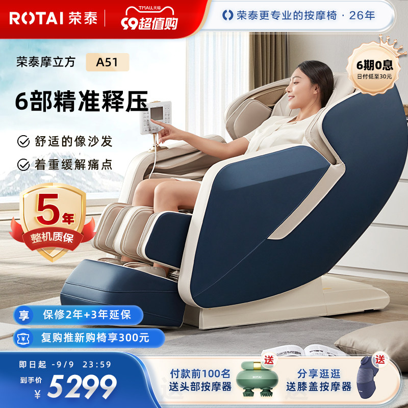 券 7000元销量5荣泰按摩椅家用全身太空舱小型多功能电动智能按摩沙发新款A51