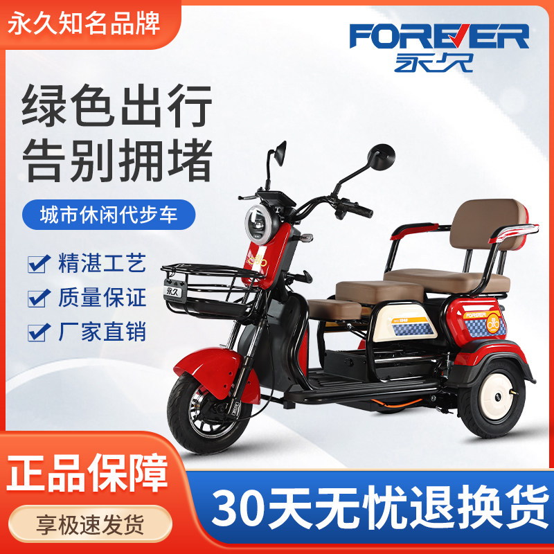永久电动三轮车家用小型老人代步电动三轮车女士接送孩子电瓶车