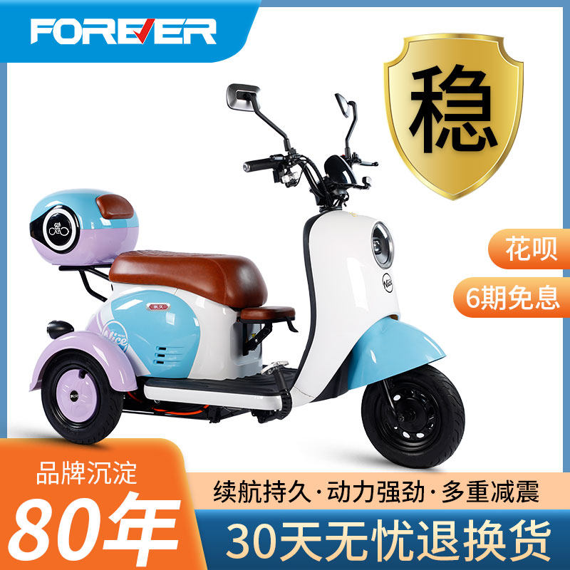 永久电动三轮车小型家用女士代步车接送孩子时尚轻便电三轮电瓶车