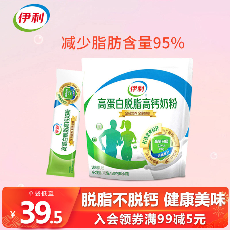 券 5元销量1000伊利脱脂奶粉成年女士学生青少年高蛋白高钙冲饮健身早餐牛奶粉