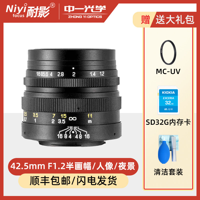 券 20元销量0中一光学42.5mm F1.2适用于 奥林巴斯 松下微单人像定焦镜头M4/3