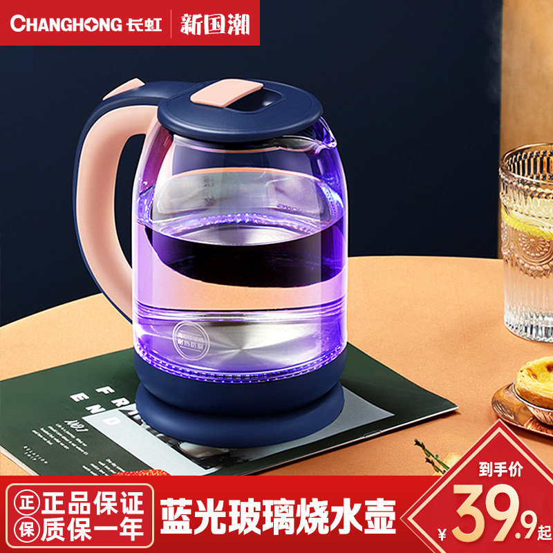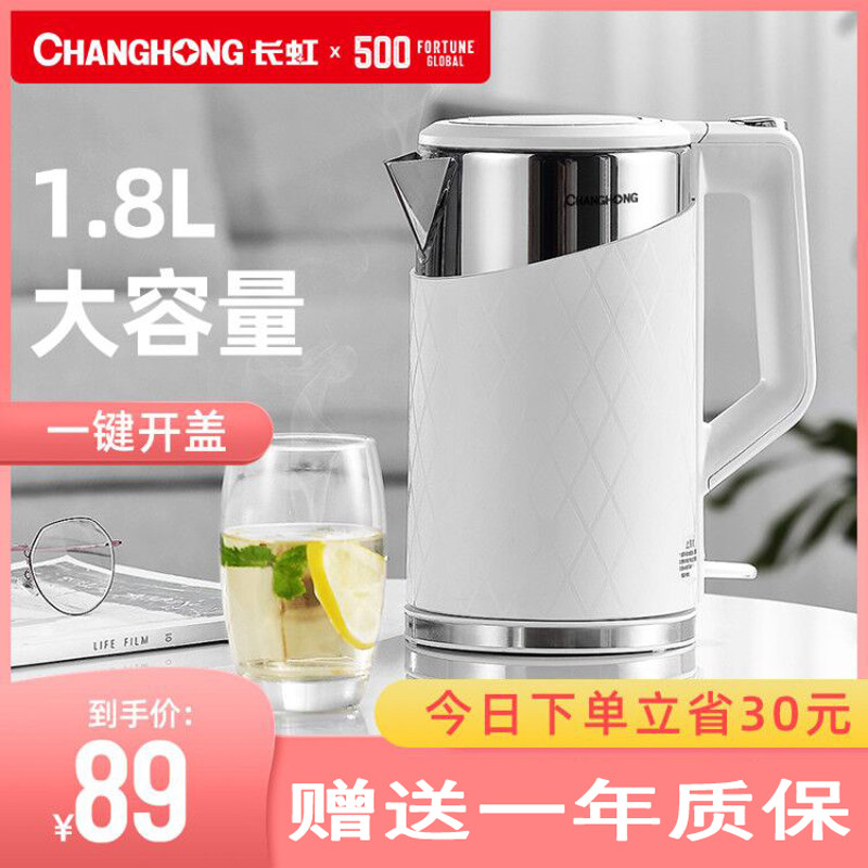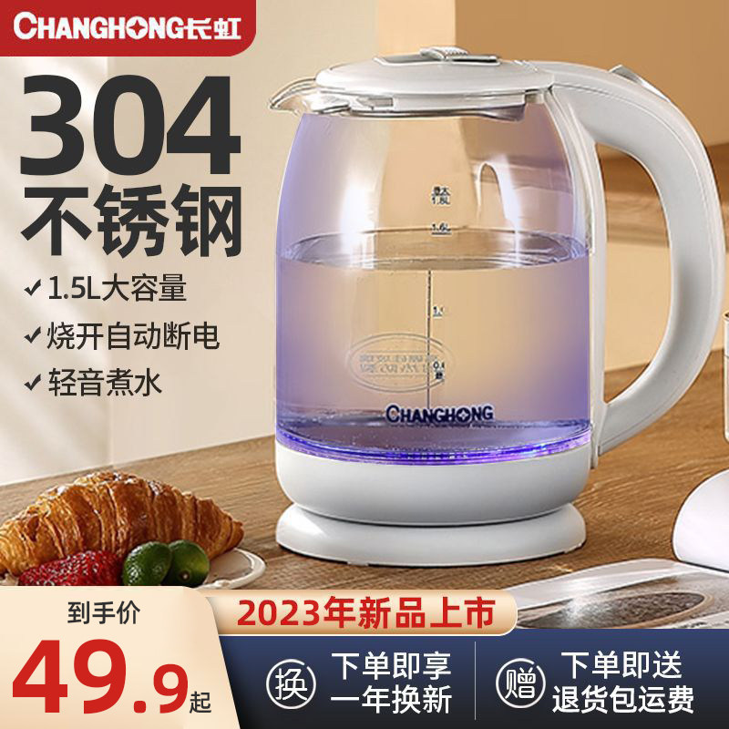 券 10元销量100长虹电热水壶开水壶泡茶全自动断电玻璃烧水壶家用304不锈钢正品