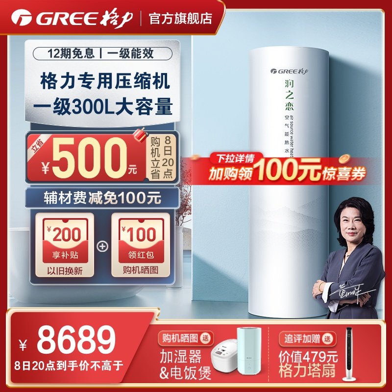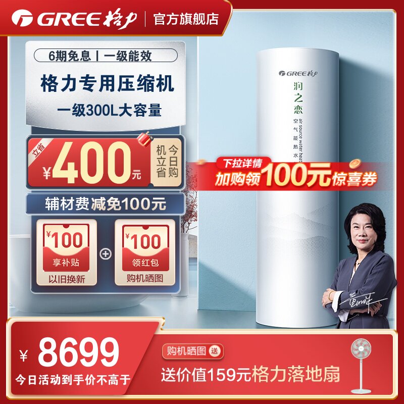 券 100元销量0Gree/格力空气能热水器300升家用大容量节能省电二级能效润之恋