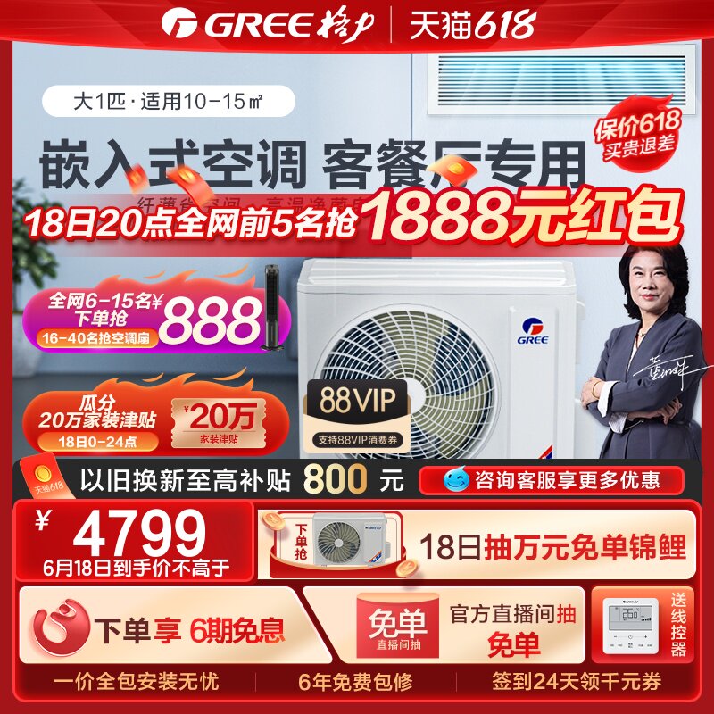 券 120元销量8Gree/格力中央空调家用客厅风管机大1匹一拖一冷暖变频隐藏卧室C3