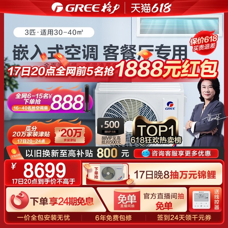 券 120元销量900Gree/格力中央空调家用客厅风管机3匹一拖一冷暖变频隐藏卧室C3
