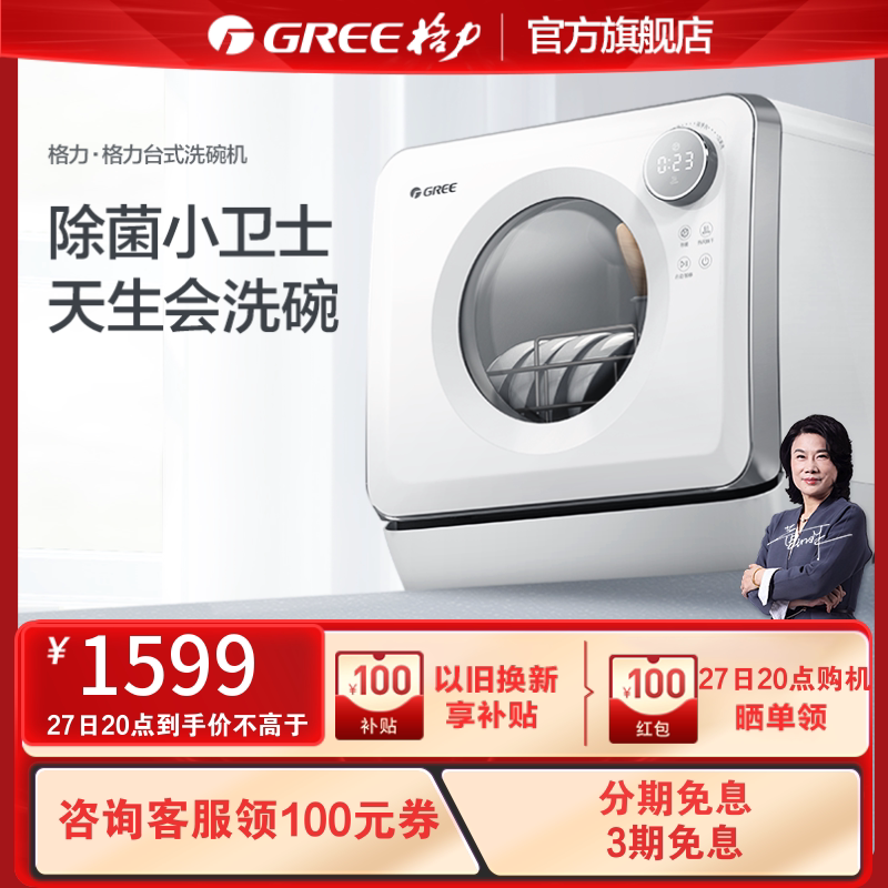 券 100元销量15Gree/格力台式全自动小型洗碗机家用免安装智能一体杀菌WQP4-04bR