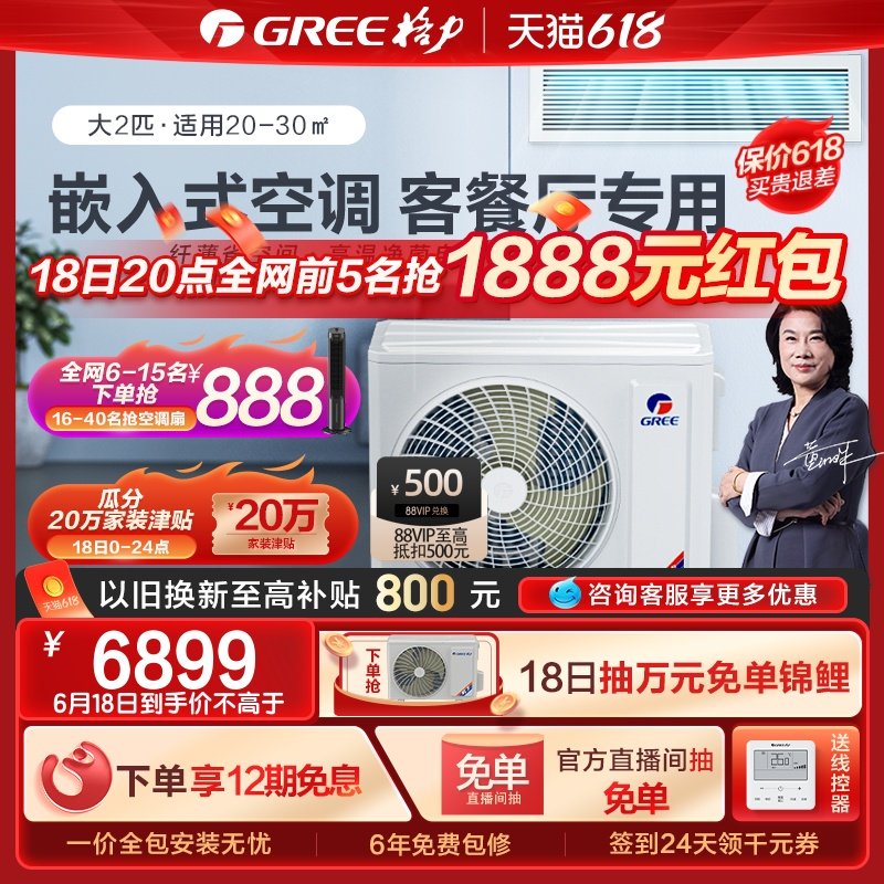 券 120元销量6Gree/格力中央空调家用客厅风管机大2匹一拖一冷暖变频隐藏卧室C3