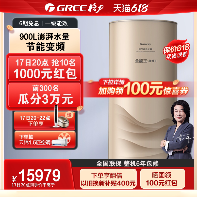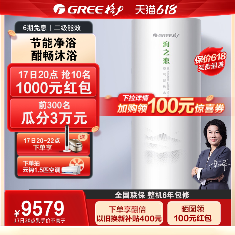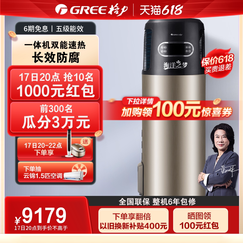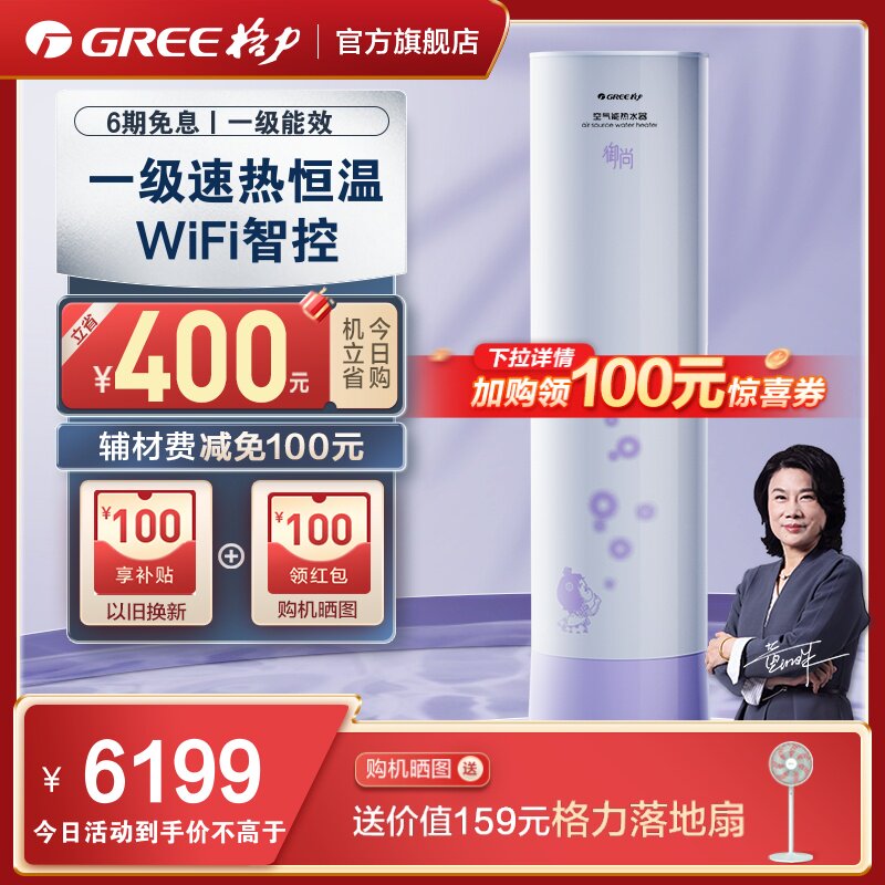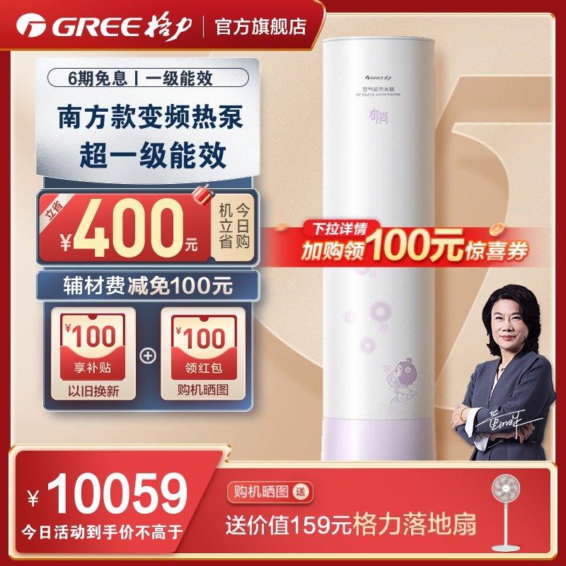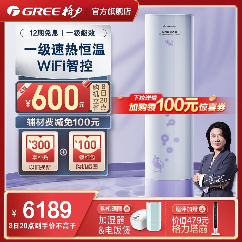 券 100元销量10Gree/格力空气能热水器一级能效300升家用绿色智能大容量润之恋