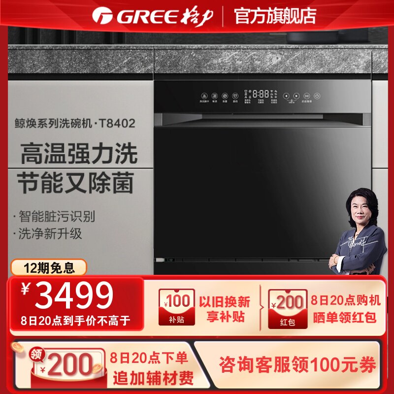 券 100元销量8Gree/格力DW-T8402嵌入式洗碗机高温去污消毒一体智能款10套