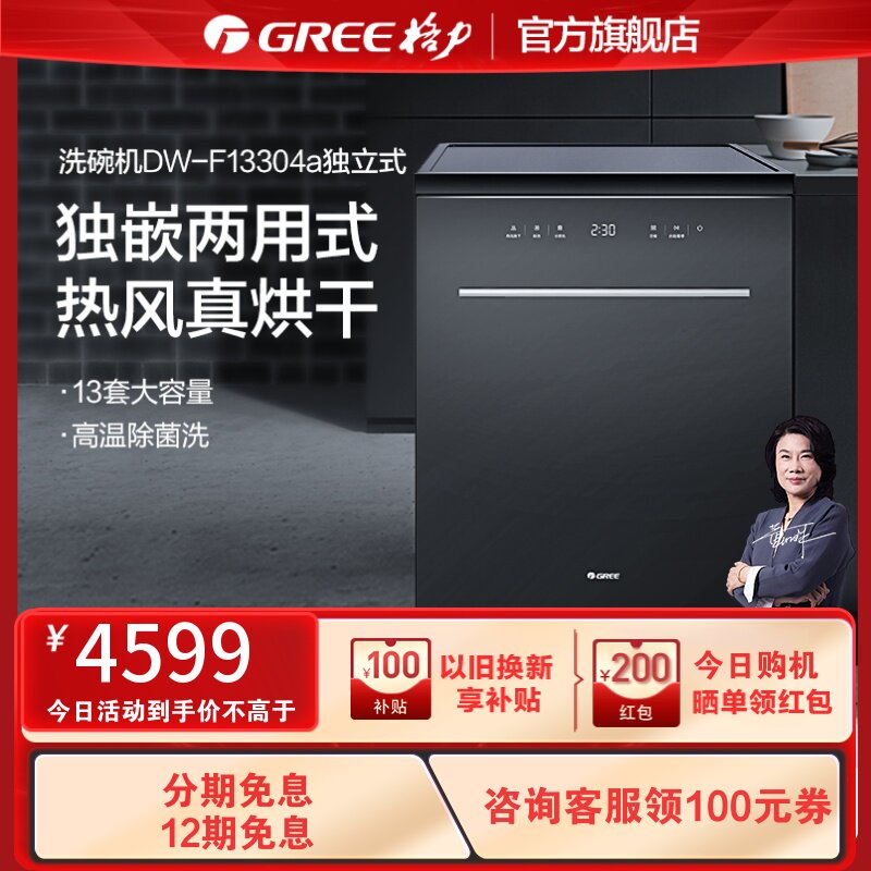 券 100元销量5gree/格力洗碗机全自动家用智能热风烘干消毒刷碗一体13套独立式