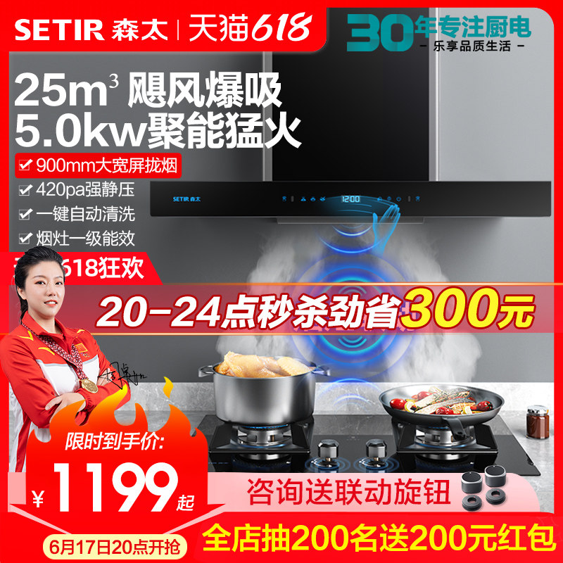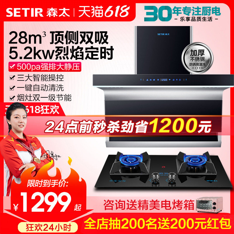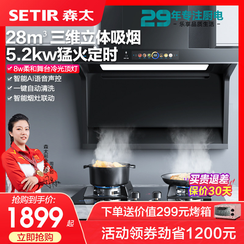 券 400元销量100森太B218QL欧式抽油烟机套装欧式顶吸式烟灶联动油烟机燃气灶家用