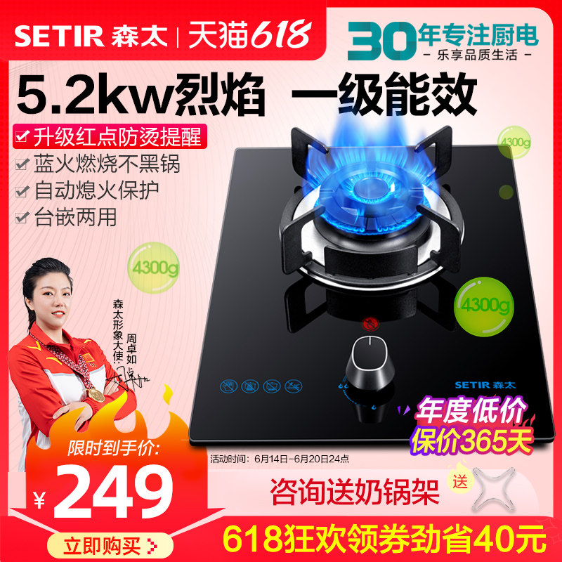 券 50元销量50森太T17 燃气灶单灶家用 煤气灶单个炉具天然气液化气嵌入式台式
