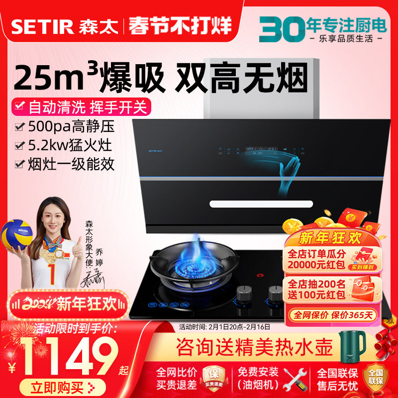 券 60元销量200森太B530QTL抽油烟机燃气灶套餐灶具套装组合大吸力烟灶消三件套
