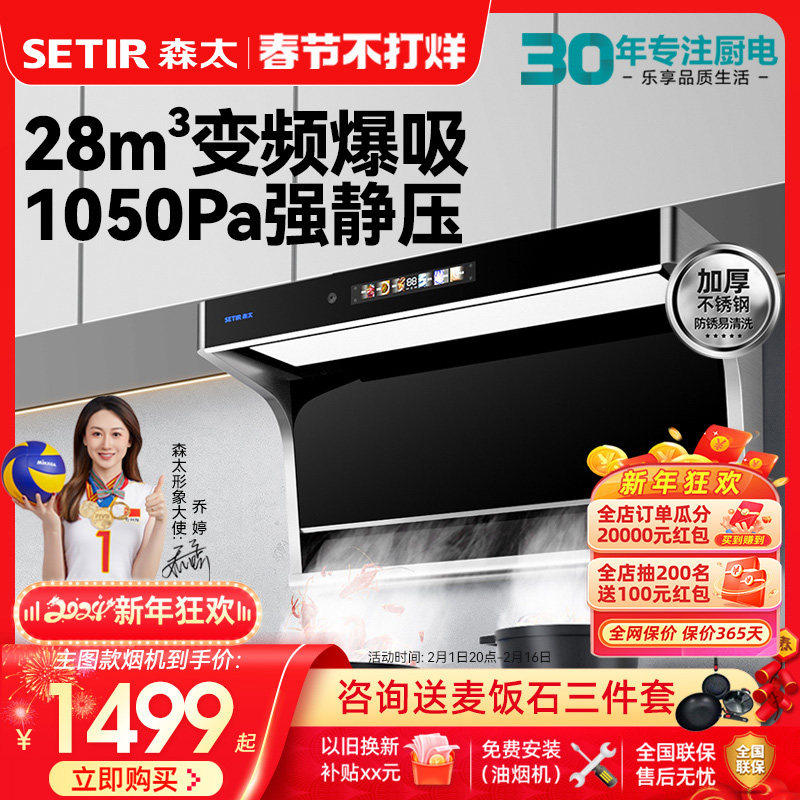 券 80元销量21森太B530侧吸式抽油烟机厨房家用 吸油机大吸力小型烟机自动清洗