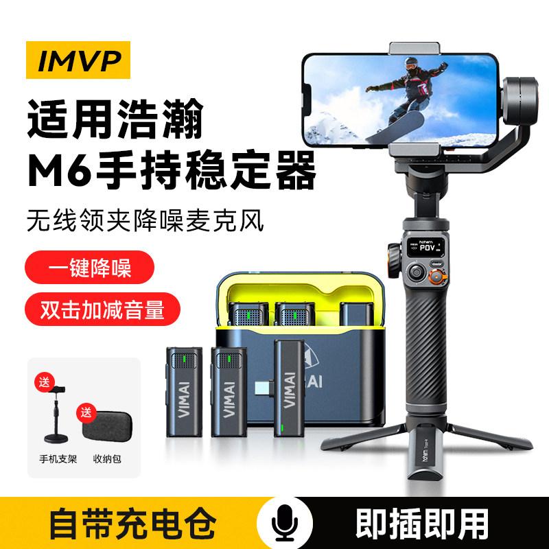 券 10元销量10无线麦克风小蜜蜂领夹式胸麦适用Hohem浩瀚M6云台拍视频收音降噪