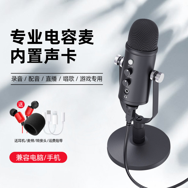 券 10元销量8【专业录音降噪】电容麦克风适用苹果手机13ProMax/12/11/Xs/Xr/8/7/ipad平板电脑直播吃播主播配音收音话筒