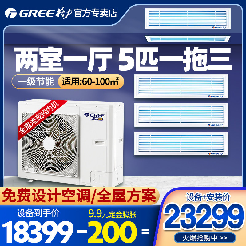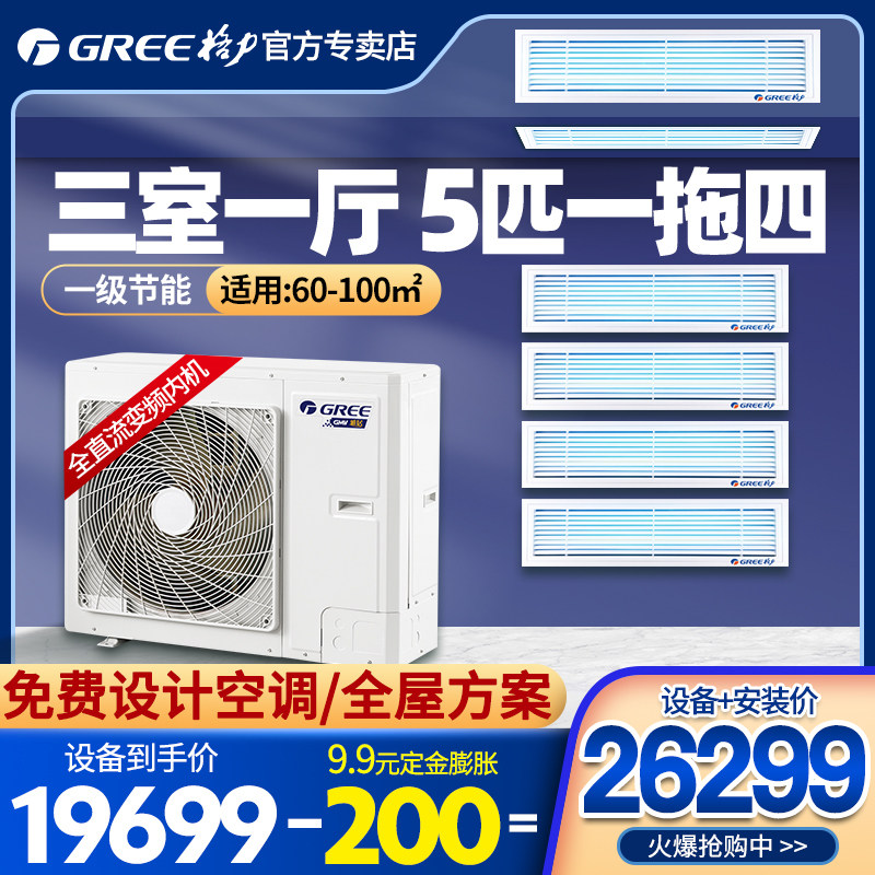 格力中央空调一拖三 1级能效变频 5匹家用风管机多联机 颐居120