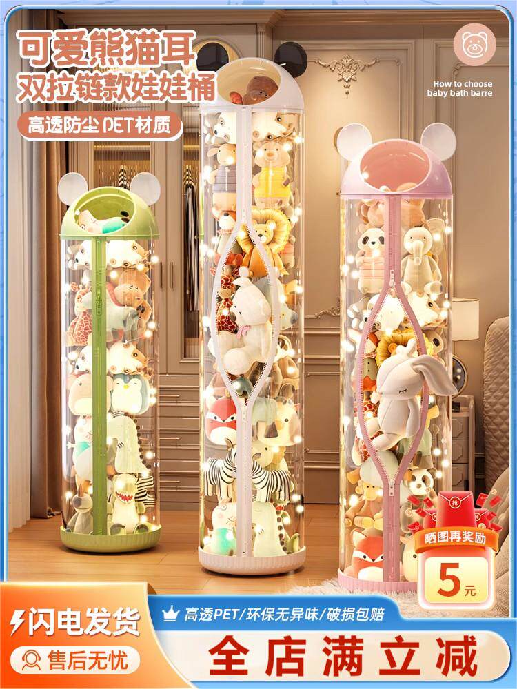 券 1元销量0娃娃收纳桶玩具收纳筒升级拉链款毛绒玩偶儿童装放公仔的透明神器