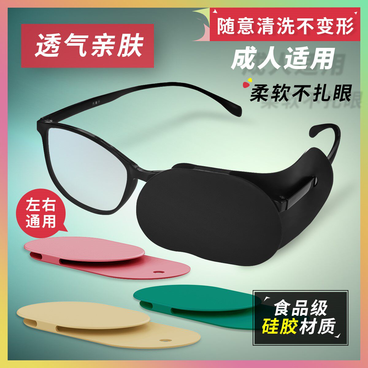 券 1元销量0单眼遮盖眼罩弱视斜视遮光罩可水洗成人射击遮挡硅胶眼镜罩