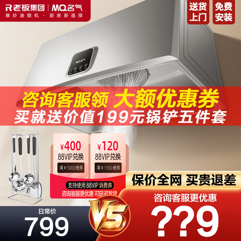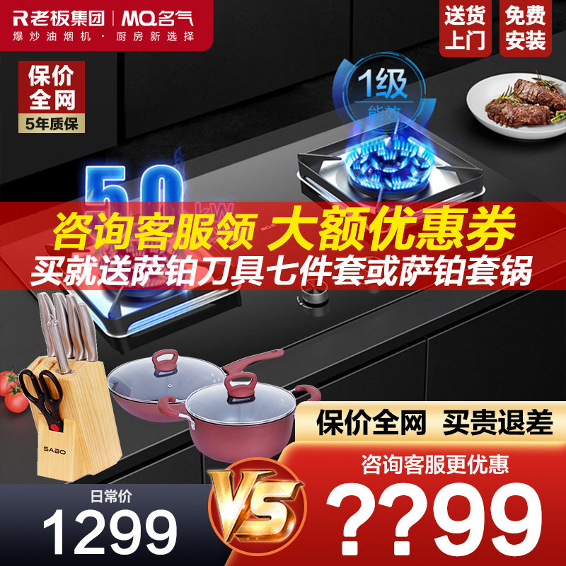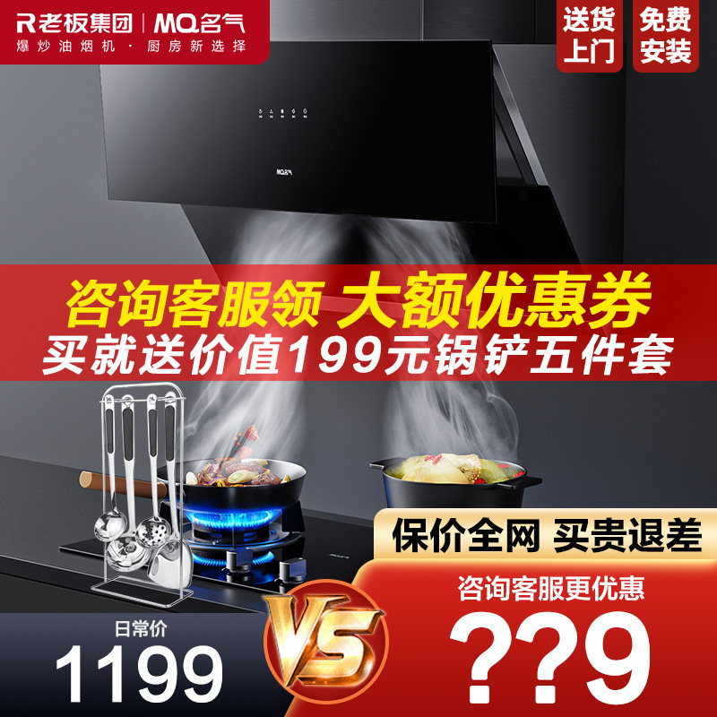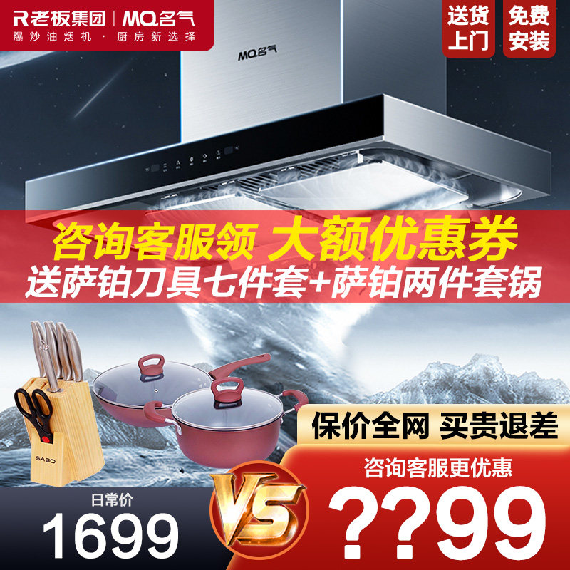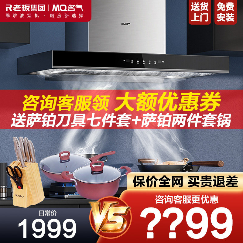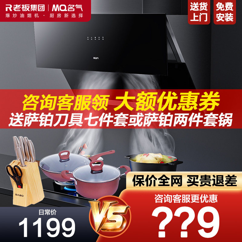 券 200元销量8老板A5508抽油烟机燃气灶套装名气变频大吸力顶侧双吸官方旗舰店