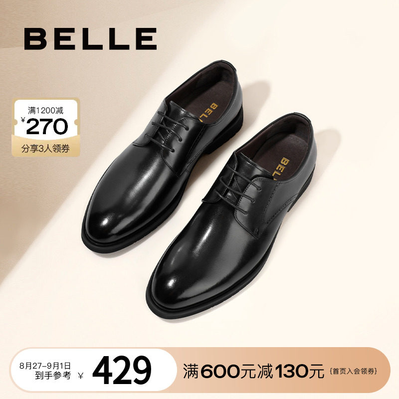 券 120元销量300百丽男鞋商务鞋正装鞋子通勤真皮结婚鞋新郎黑色男士皮鞋B3GK3CM1