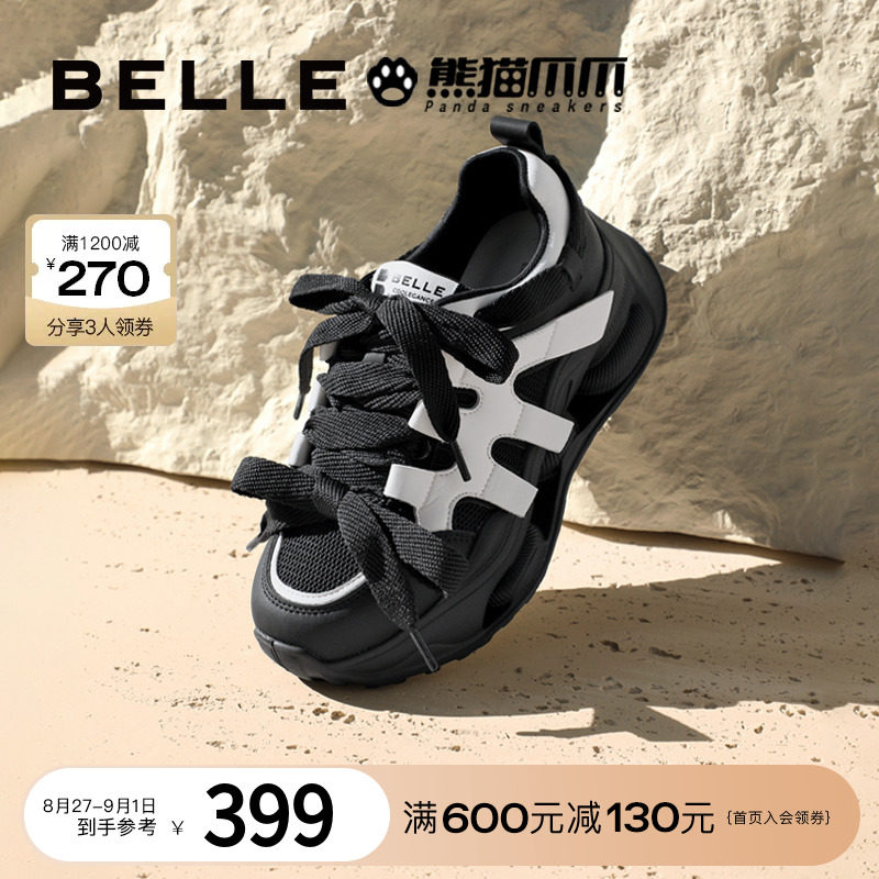 券 120元销量500百丽厚底老爹鞋女鞋2023新款黑白熊猫鞋鞋子运动休闲鞋B1543CM3