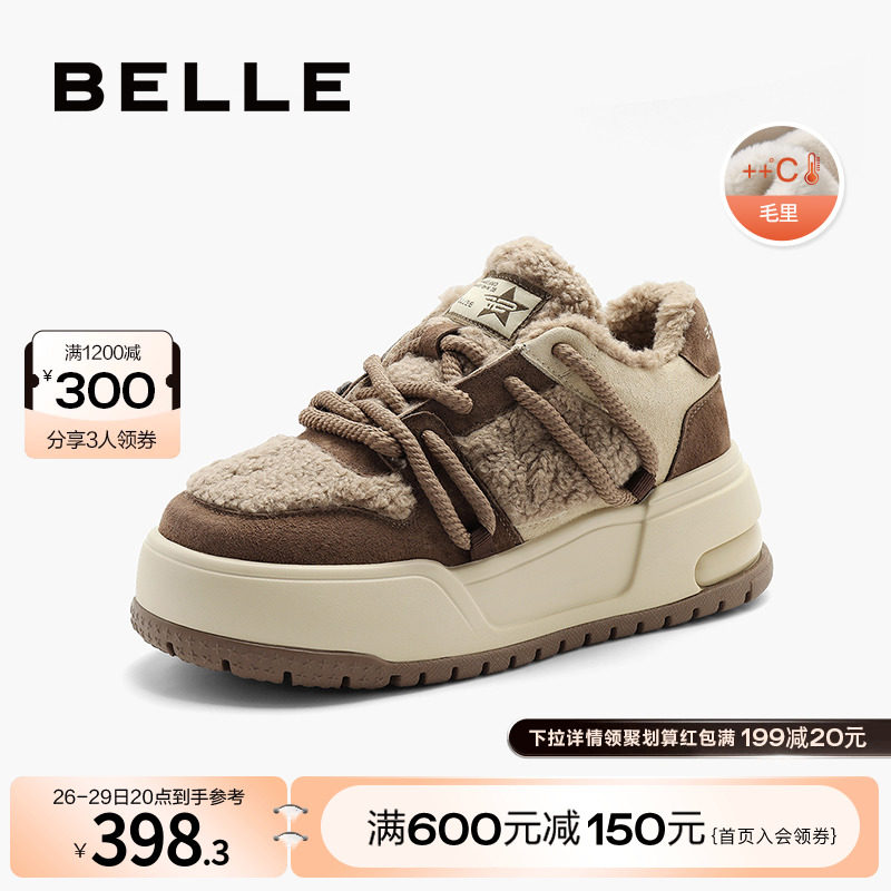 券 140元销量500百丽保暖棉鞋毛毛鞋2024春季新款女鞋子运动休闲鞋板鞋B1762AM4