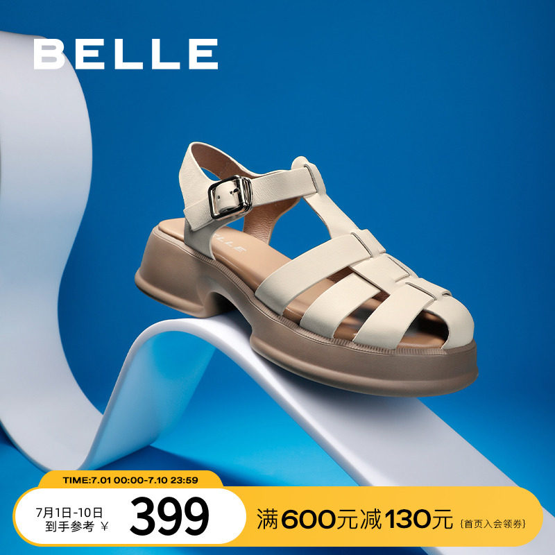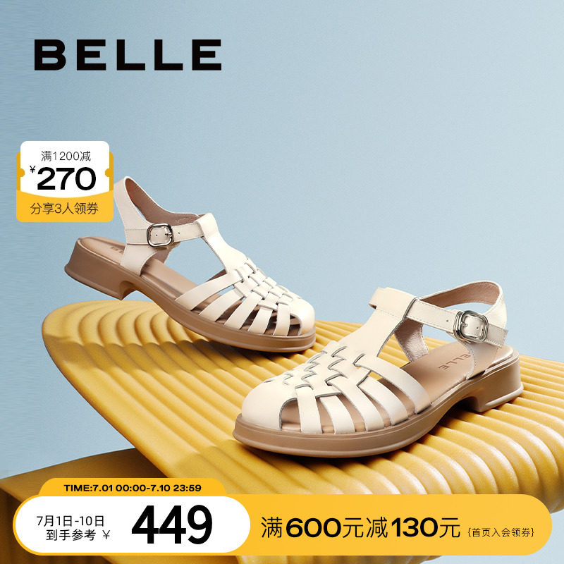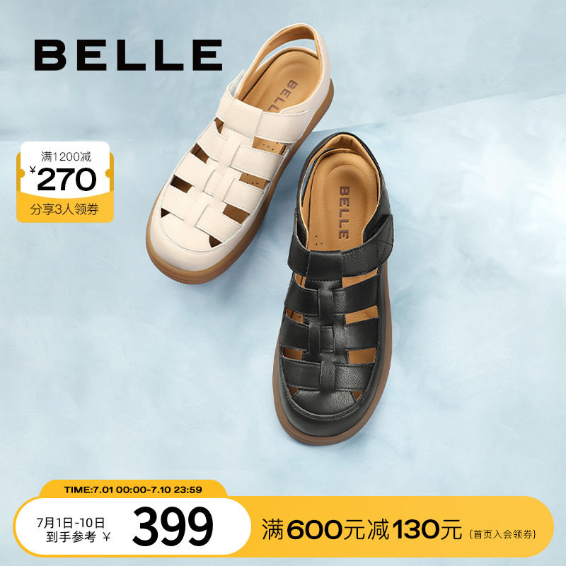 券 120元销量300百丽编织罗马凉鞋女鞋2023夏季新款平底镂空包头猪笼鞋B1296CL3