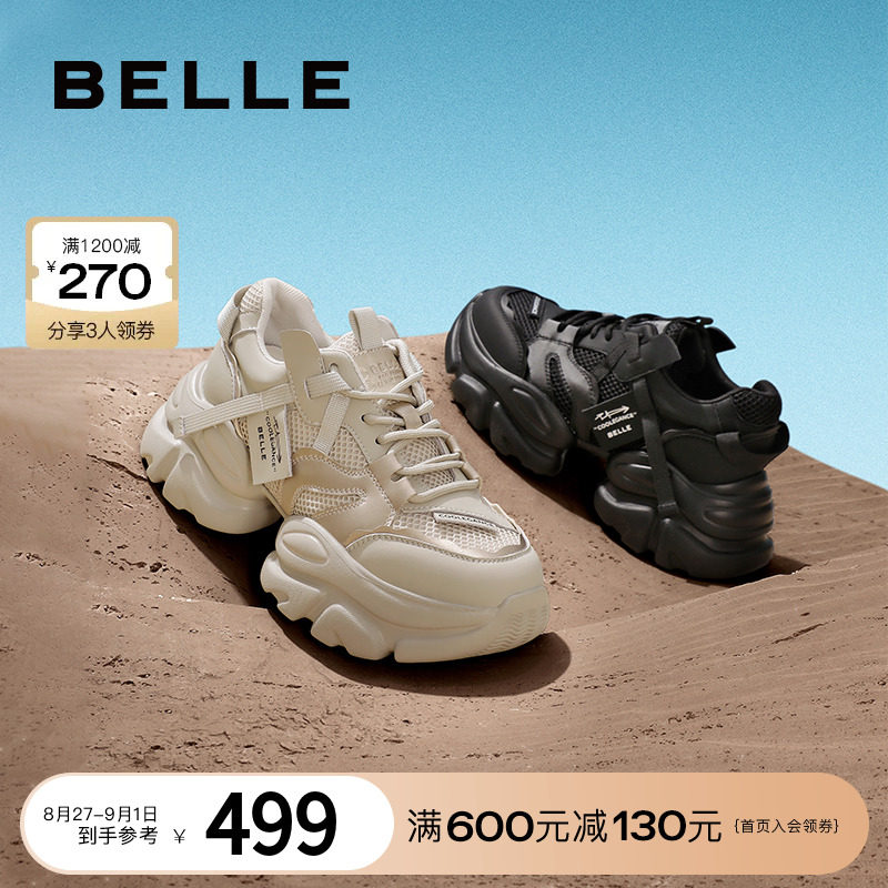 券 120元销量300百丽网面透气老爹鞋女鞋子2023夏季新款商场休闲运动鞋Z9H1DCM3