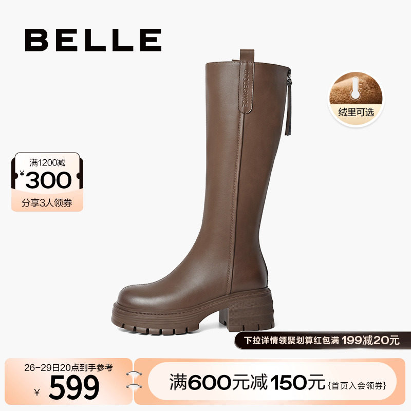 券 160元销量100百丽真皮骑士靴女靴子2023冬季新款黑色长筒靴加绒高长靴3FT72DG3