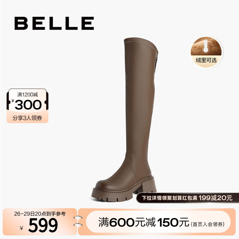 券 200元销量500百丽显瘦弹力靴女靴2023冬季新款高长靴子加绒长筒瘦瘦靴A7R1DDC3