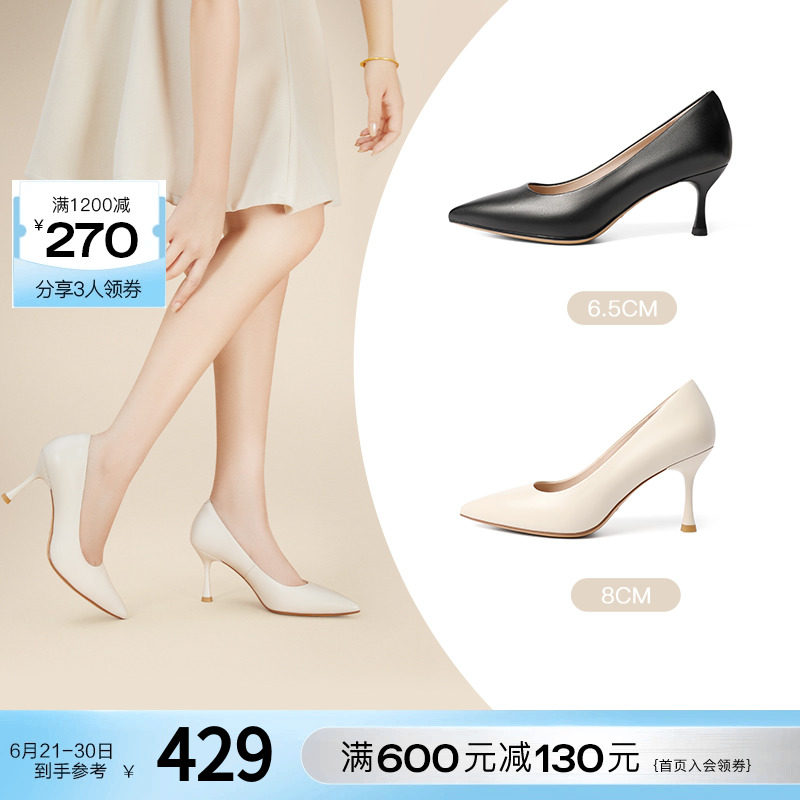 券 120元销量400百丽细高跟鞋女新款鞋子女鞋婚鞋商场通勤黑色尖头单鞋BDA15CQ2