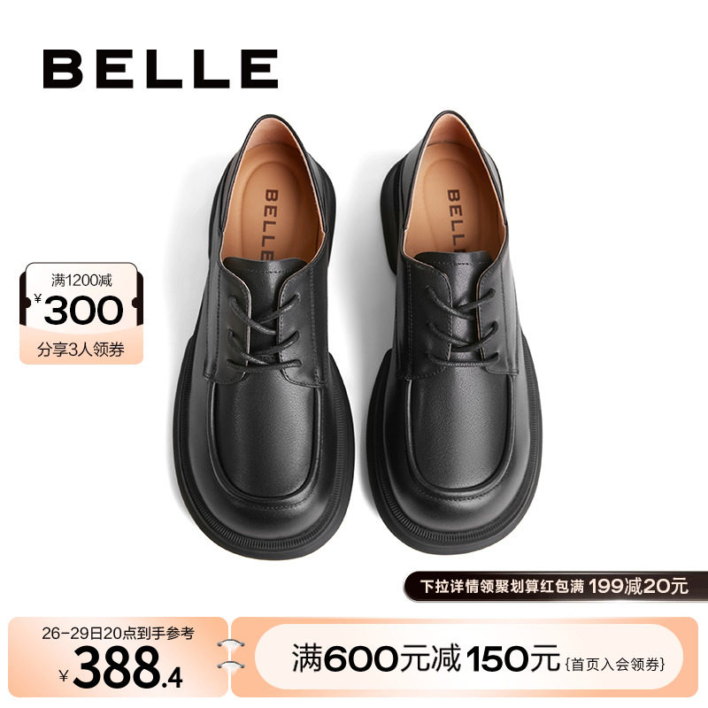 券 120元销量1000百丽牛津鞋女鞋2023秋季新款鞋子黑色小皮鞋乐福鞋单鞋Z7A1DCM3
